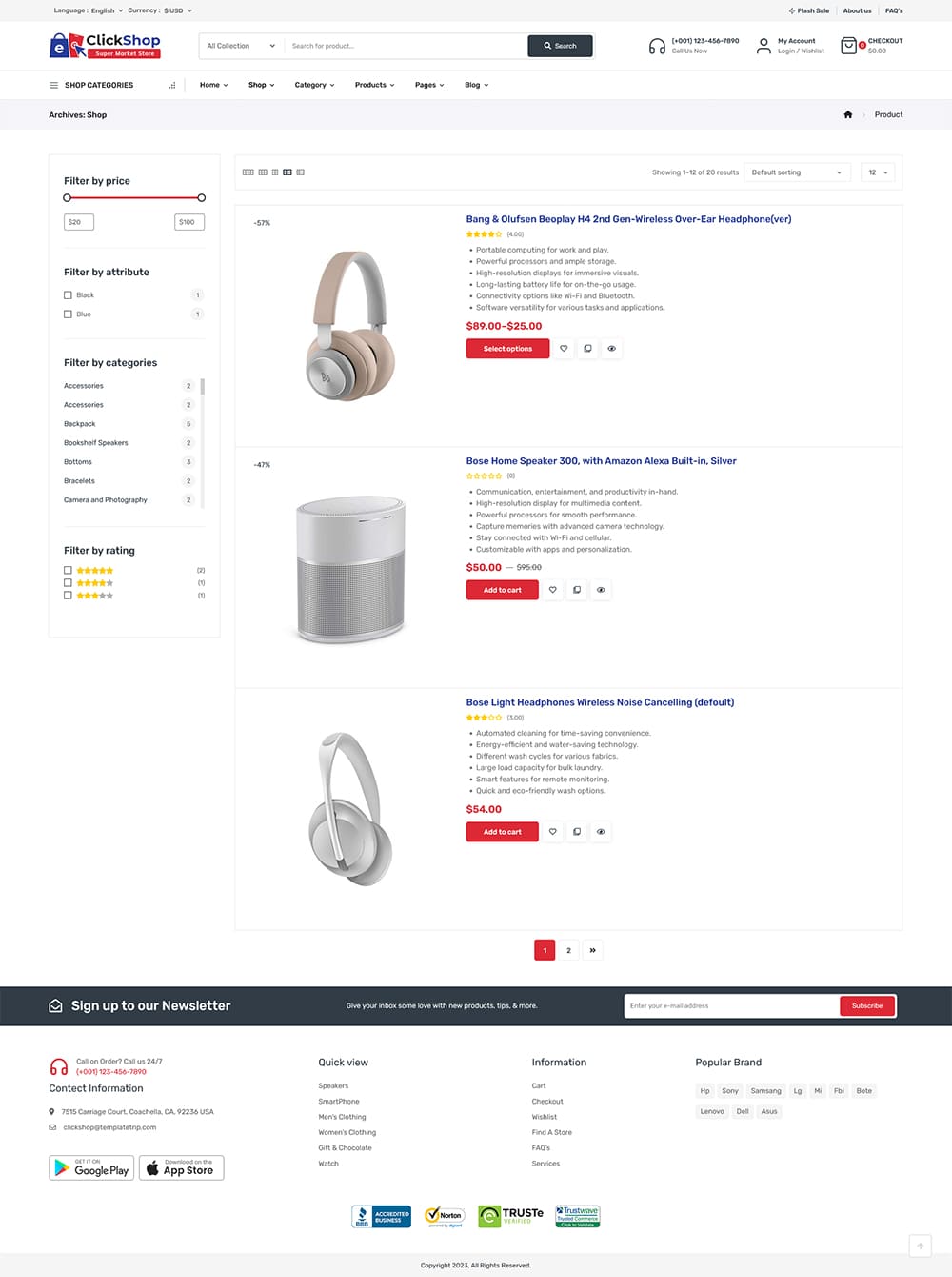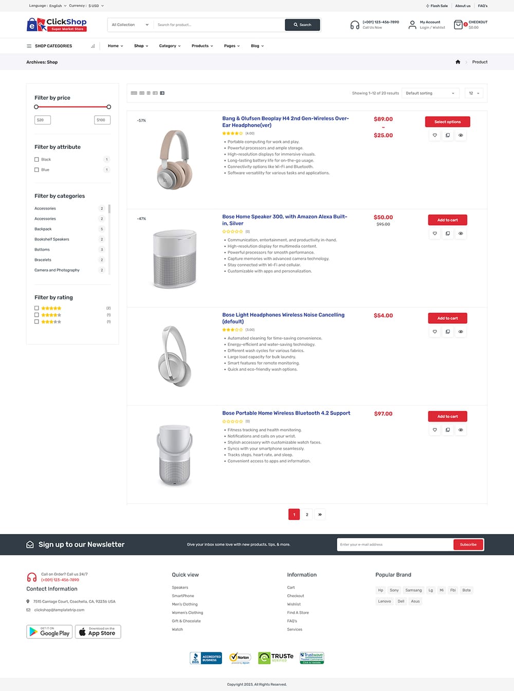 ClickShop – The Best of High-Converting WooCommerce Responsive Theme – is a professional, sleek, and visually captivating eCommerce template. It is meticulously designed to provide a minimalist and attractive online shopping experience. ClickShop is the ideal solution for eCommerce shopping stores and offers a perfect platform for small and medium-sized businesses. With its extensive range of features and functions, ClickShop allows for effortless customization, enabling you to tailor your store precisely as you envision it.