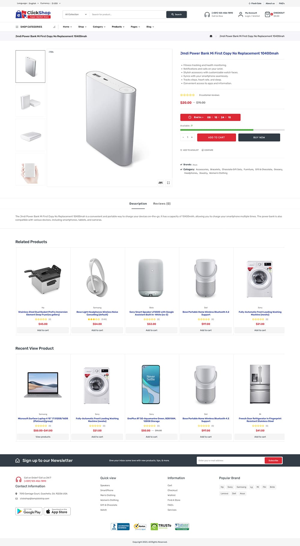 Be the first to review “ClickShop – WooCommerce Theme For Electronic & Gadgets Marketplace Store”