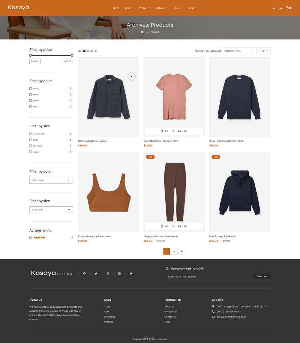 Introducing Kasaya β Modern Fashion & Apparels β WooCommerce Responsive Theme, a cutting-edge and stylish WooCommerce theme designed specifically for fashion and apparel online stores. Kasaya offers a wide range of unique features and functionalities that will elevate your store’s appearance and streamline your online business operations. Let’s delve into the details of this exceptional theme. One of the standout features of Kasaya is its user-friendly interface that requires no coding knowledge. You can effortlessly customize and personalize your online store without writing a single line of code. With its intuitive theme options panel, you have full control over the layout, colors, fonts, and other visual elements of your website, enabling you to create a unique and visually appealing online store that aligns with your brand identity.